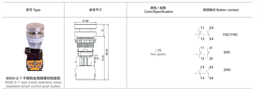 8050-2-2 金属 ( 不锈钢 ) 隔爆控制按钮